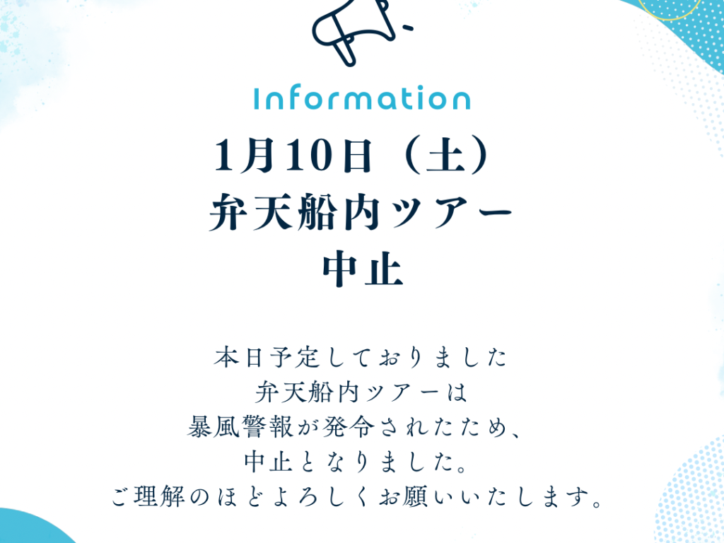 弁天船内ツアー中止のお知らせ